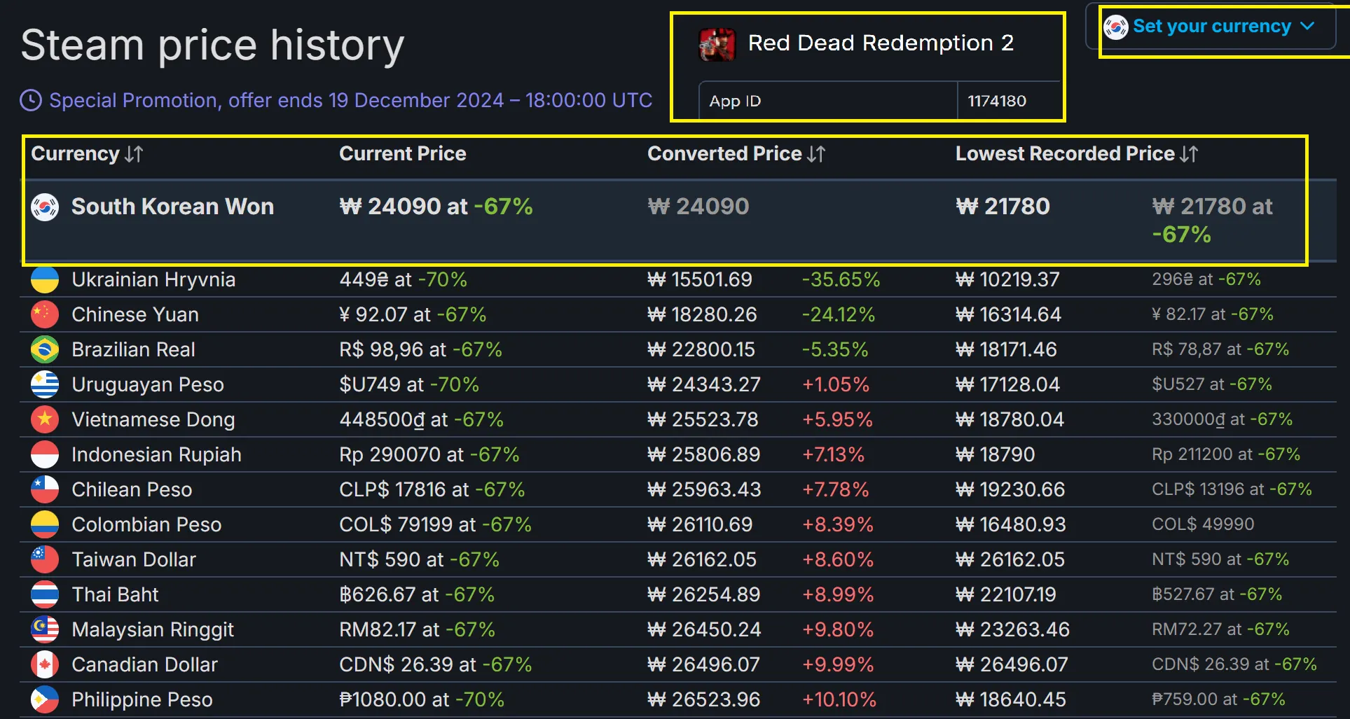 지역별 가격 비교: VPN 등을 이용하여 다른 국가의 Steam 스토어에서 게임을 구매하는 것은 Steam 약관 위반입니다. 하지만, SteamDB를 통해 각 지역의 가격을 비교해보고, 가격 차이가 얼마나 나는지 확인해볼 수 있습니다. 이를 통해 게임 가격 정책에 대한 이해를 높일 수 있습니다.