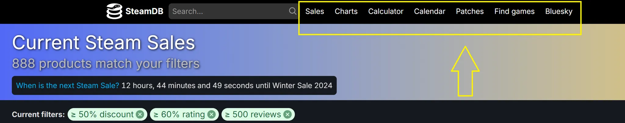 1) SteamDB 상단 메뉴