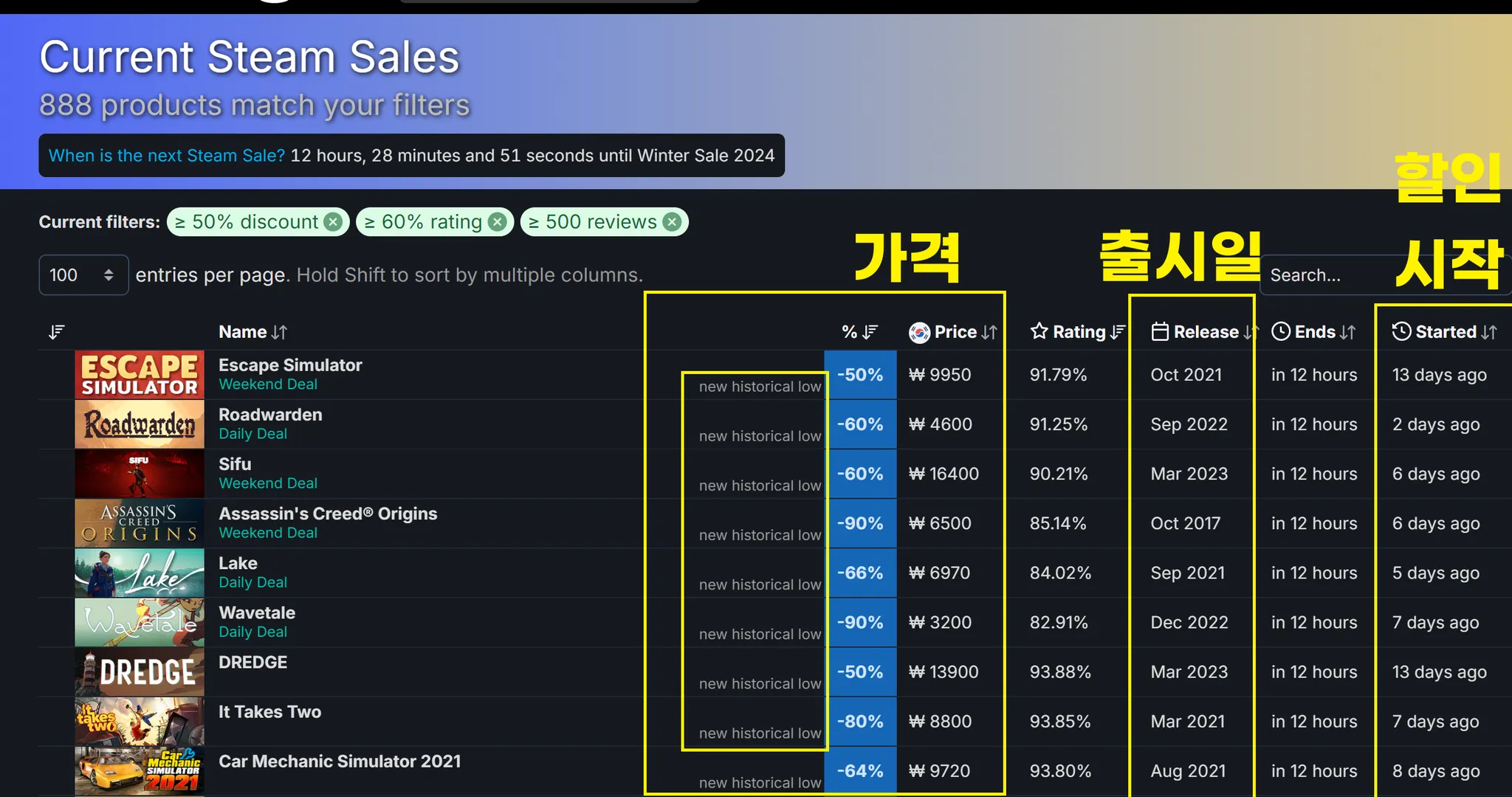 스팀DB - Current Steam Sales - 현재 스팀에서 할인 중인 게임 찾기