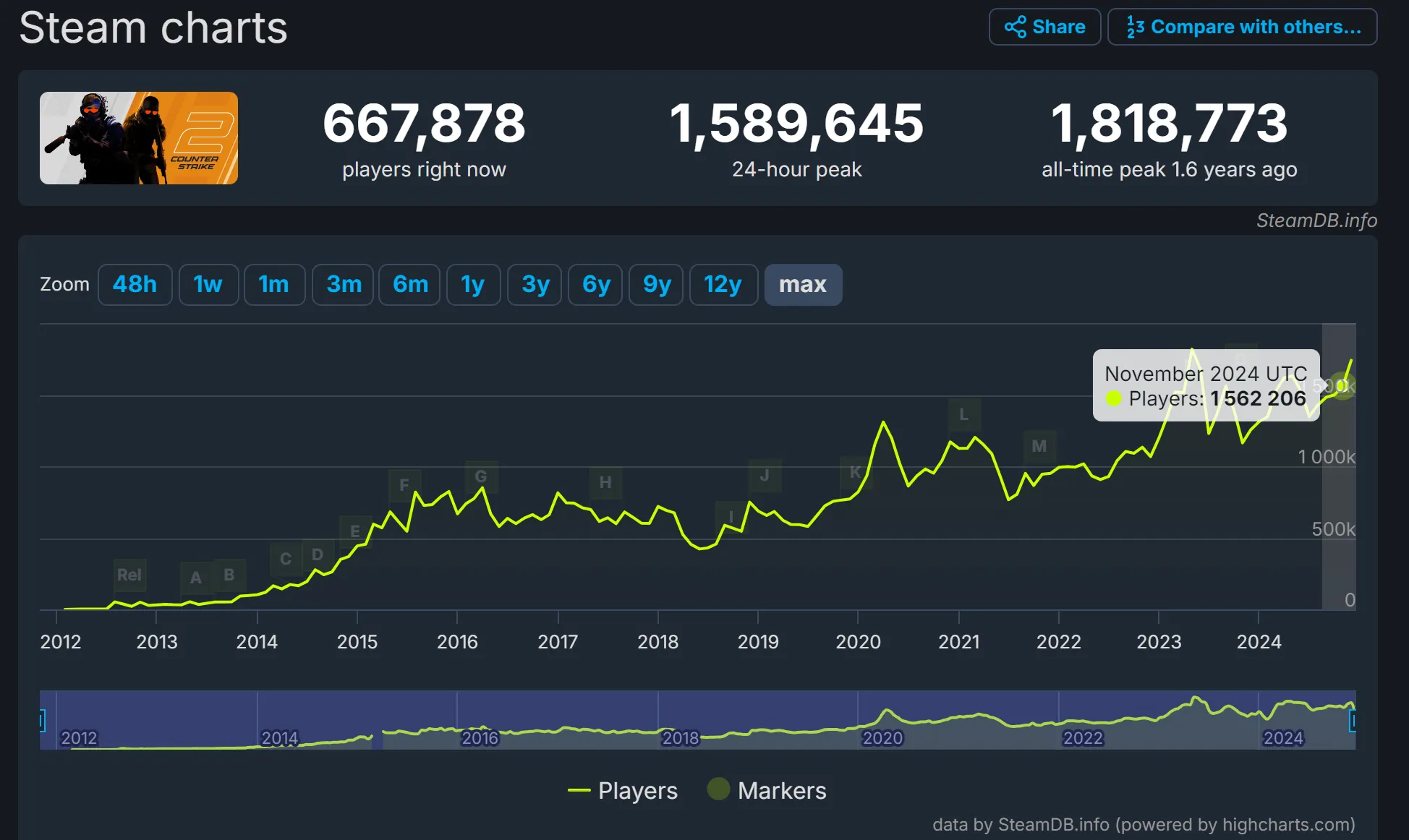동시 접속자 측정: Steam API를 통해 실시간 동시 접속자 수를 제공합니다. 이를 통해 게임의 인기 추이를 파악하고, 서버 상태를 가늠해볼 수 있습니다.