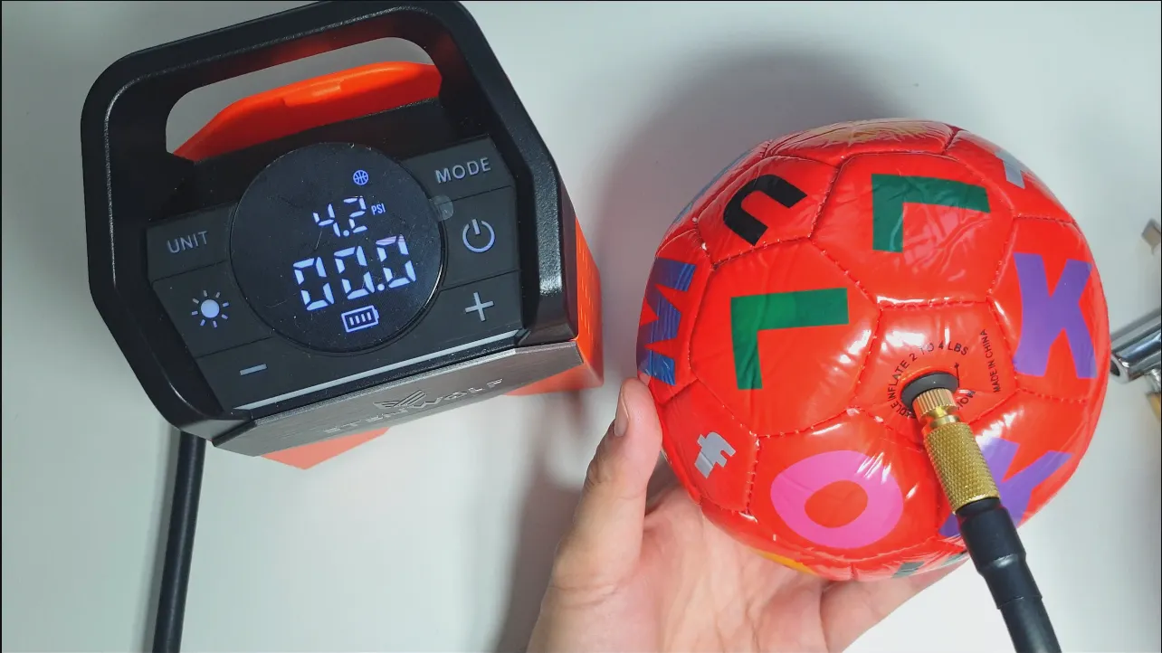공 주입: 아이들 공에 공기를 주입한 결과, 4.2 psi로 설정 시 빠르고 정확하게 원하는 압력까지 주입할 수 있었습니다. - 공에 표기된 숫자를 참고로 압력을 조절하셔야 합니다.