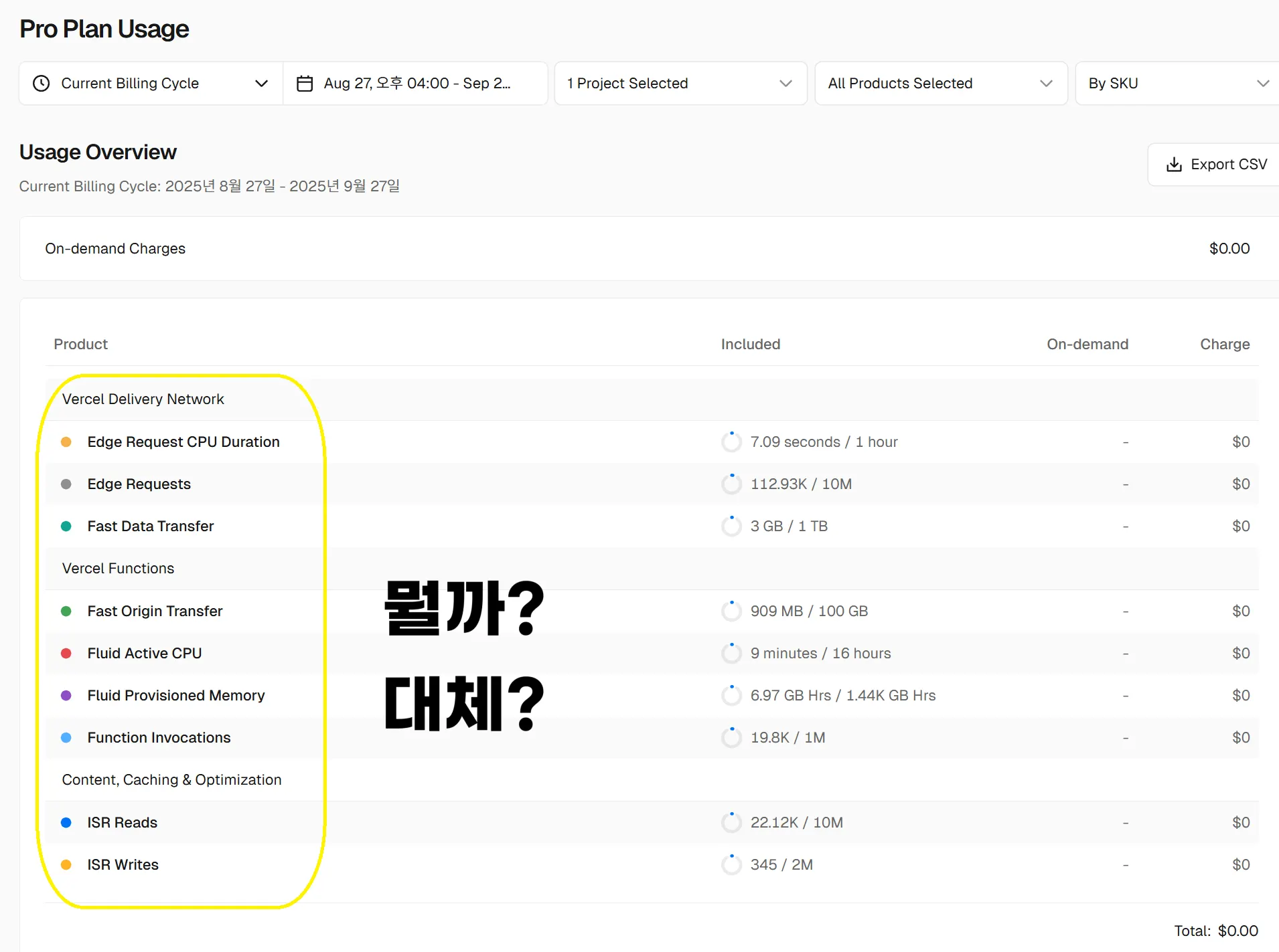 Fluid Active CPU | 서버리스 함수가 실제로 CPU를 사용하여 연산을 수행한 시간 | 분(minutes) | 실제 실행 시간만 과금 | |