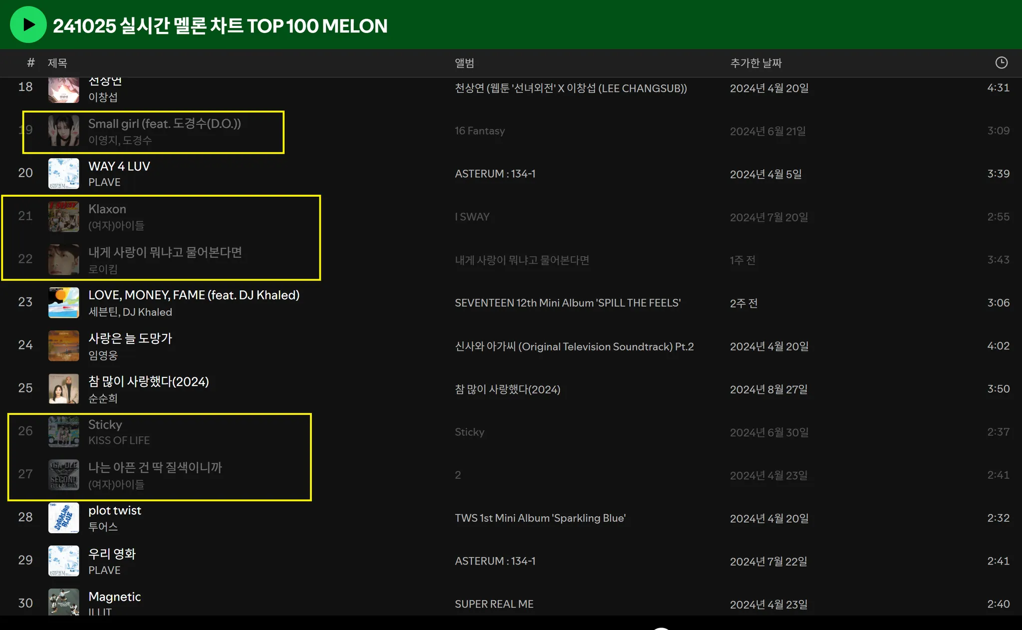 멜론 발라드 차트 TOP100 리스트 -> 재생 불가 한 음악 상당함