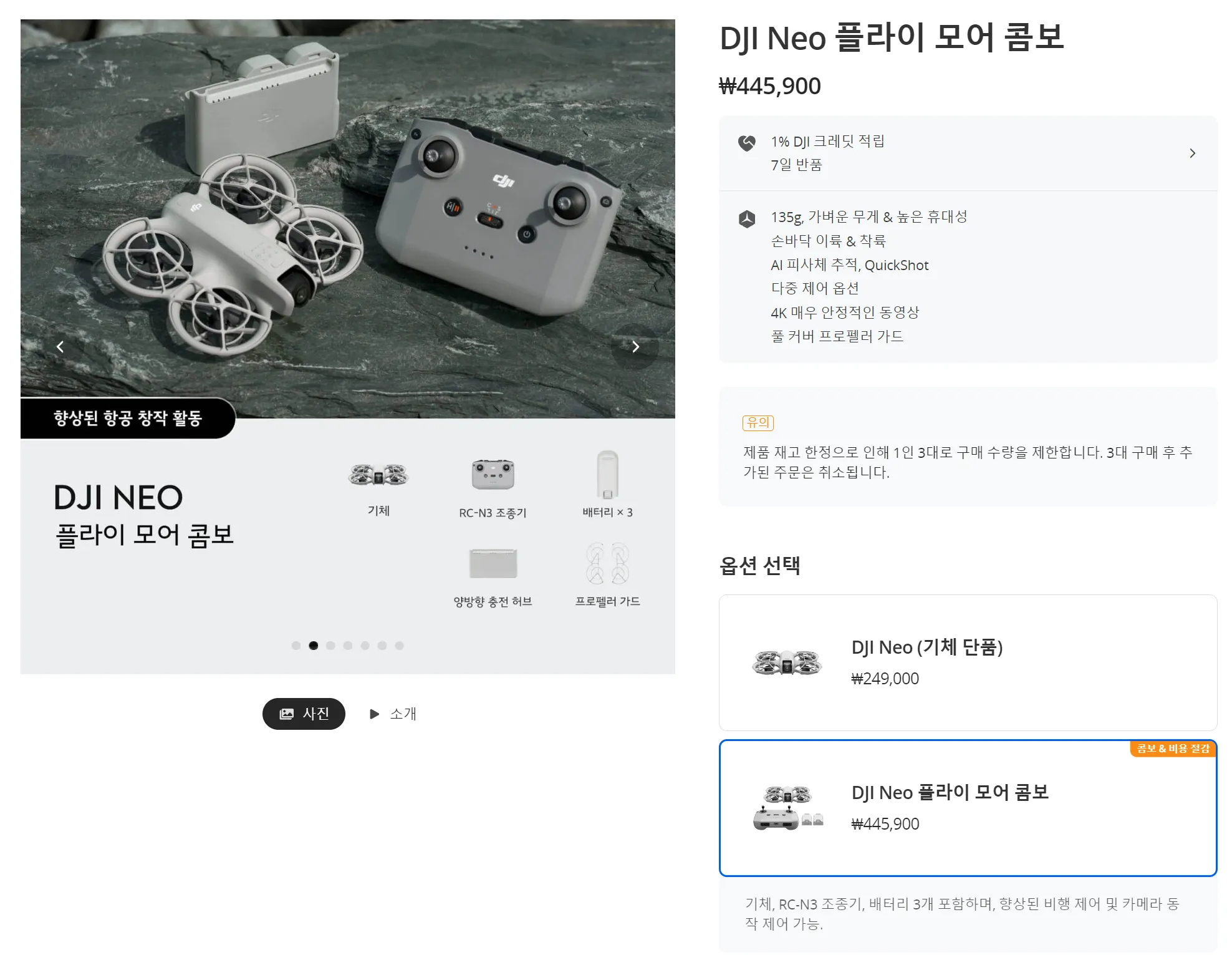 고화질, 안정성, 휴대성을 갖춘 DJI Neo로 새로운 드론 경험을 시작해보세요!