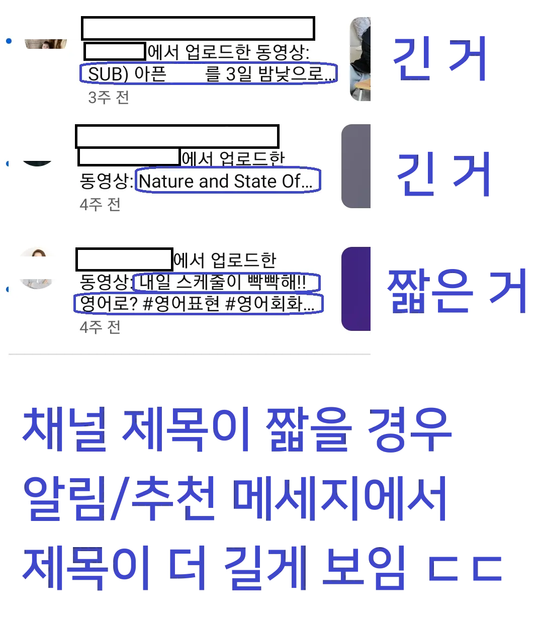 시간 필요 : 신규 채널의 경우, YouTube가 여러분의 채널을 이해하는 데 시간이 필요합니다. 이 과정에서 적절한 타이틀과 설명은 YouTube 알고리즘이 영상을 이해하고 적절한 타겟 오디언스에게 추천하는 데 중요한 역할을 합니다.