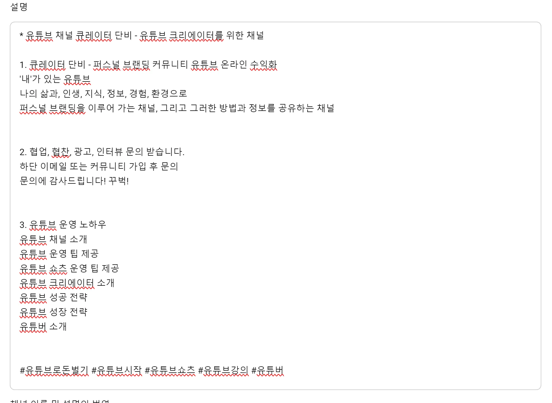 구독자 타겟팅: 맞는 구독자를 유지하고, 무분별한 홍보보다 관심사 맞는 콘텐츠 제공.